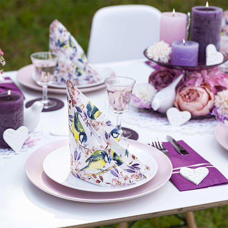 Welcome to the world of garden celebrations with our Blue Tits lunch napkins, designed to bring a touch of springtime charm to your table. Featuring delicate watercolor motifs of lively blue tits perched on blooming branches, these napkins are perfect for Easter gatherings and festive garden parties.