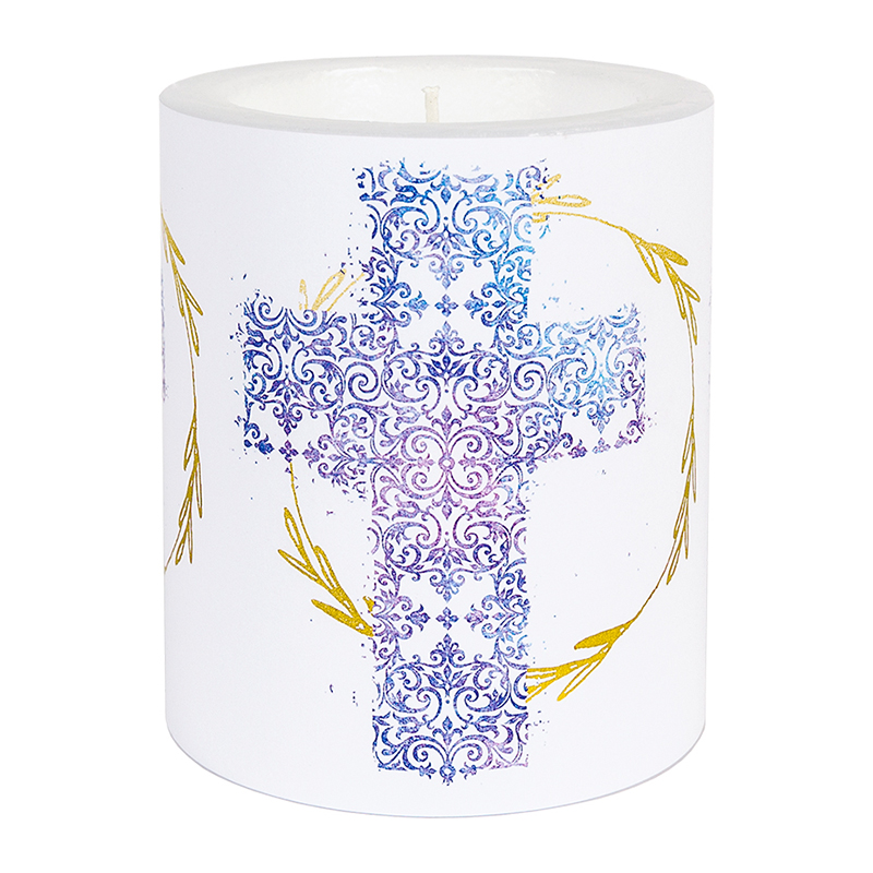 This tastefully designed candle features a stylish cross motif rendered in delicate blue hues that complement a variety of interior decor styles. The subtle charm of its design makes it a perfect match for festive gatherings, quiet evenings, or thoughtful commemorative events. Its impressive burn time of approximately 60 hours ensures that you enjoy an enduring ambiance without interruption, providing practical beauty and reliability.