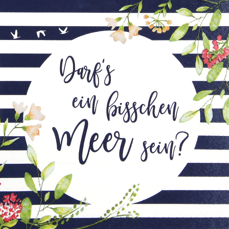 Meer sein offers a refined blend of elegance and simplicity, crafted to enhance your home décor. This white, maritime-themed napkin brings a subtle yet charming aesthetic to every table setting. Designed with a modern graphical touch, its unique appeal invites you to experience a soothing atmosphere reminiscent of seaside tranquility while maintaining a refined decor suitable for everyday dining and special occasions.