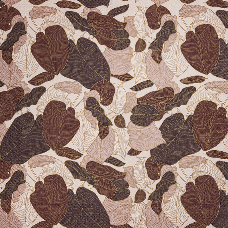 Unsere Servietten im Format 33 x 33 cm sind dreilagig und kommen in einer Packung mit 20 Stück, ideal für stilbewusste Gastgeberinnen und Deko-Liebhaber. Tauchen Sie ein in den Jugendstil mit Motiven in harmonischen Rosé-, Braun- und Creme-Tönen. Große, ineinander verschlungene Blätter mit feinen Linien, teils goldähnlich schimmernd, sorgen für ein luxuriöses und kunstvolles Ambiente.